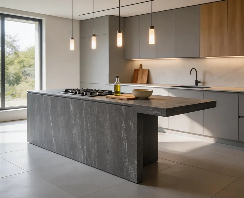 Soluções em pedras para cozinhas, banheiros, escadas, áreas gourmet e outros ambientes residenciais. Materiais que valorizam o espaço e aumentam a durabilidade do projeto.