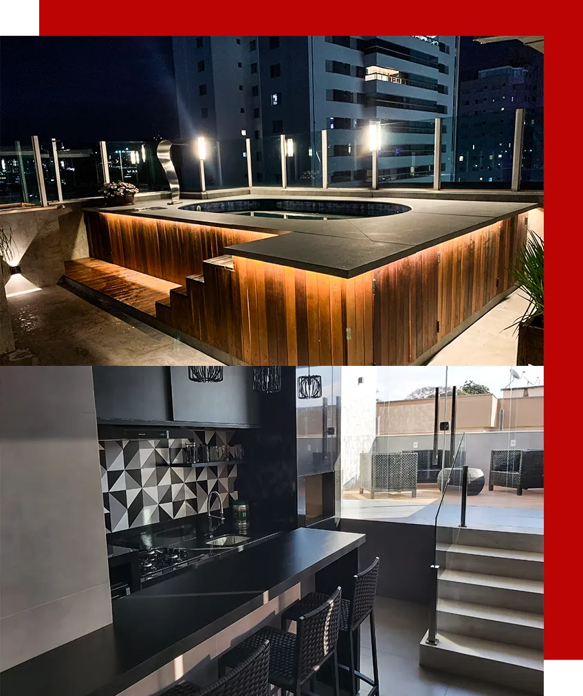 Trabalhamos com materiais selecionados e acabamento preciso para cozinhas, banheiros, escadas, áreas externas e diversos outros projetos.